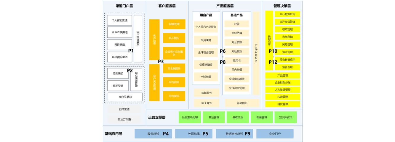 在“互联网+银行”的大时代背景下,系统经过新一代架构转型,建立了支持产品快速创新的工厂模式、以客户为中心的营销和服务体系、“泛在、跨界、智慧”的先进渠道体系。建行系统架构具备了“互联网+”时代计算资源虚拟化、无所不在的移动计算与大数据分析所要求的能力,为未来的业务发展提供IT支撑。